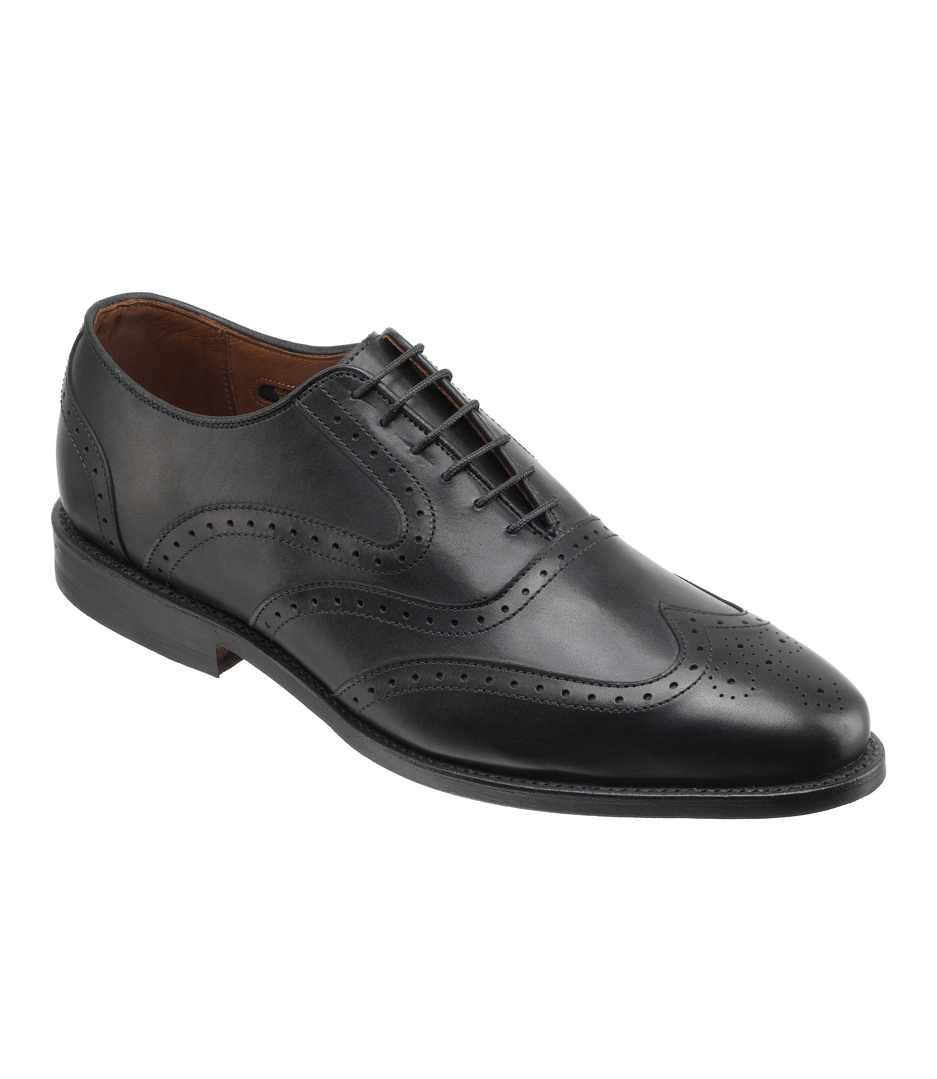 Jos. A Bank Exclusive. This timeless classic is sure to have everlasting appeal that will always be in style with its stylish design & fit. Classic lace up balmoral wing tip with perfing and toe medallion details. Made in 360 degree Goodyear welt construction. Made with high quality European calfskin leather. Fully leather lined Cork layer under leather insole. Oak leather sole with stacked leather rubber heel for durability. Made in USA of imported leathers. Recraftable. Read more